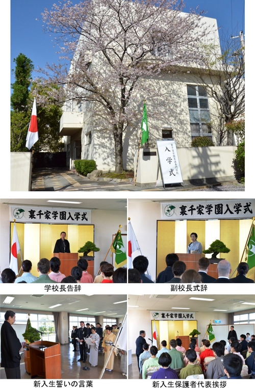桜花の舞う4月8日(月)、平成25年度入学式ならびに第1学期始業式が執り行われました。大荒れの天気となった週末から一転、透き通る青空のもと新入生たちは裏千家学園の門をくぐりました。