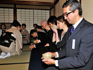 | 式後は利休御祖堂に入学の報告をし、茶道科会館心花の間で講師による呈茶を受け、大徳寺聚光院へ利休居士の墓参をして、裏千家学園生としての第一歩を踏み出しました。 |