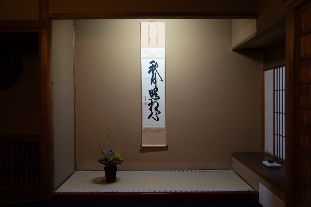 まずは1階茶室の本席(薄茶席)にて、涼しい秋を感じる道具組みでおもてなし。