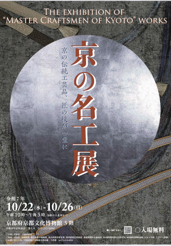 10月22日~26日の5日間、京都府からの依頼により京都文化博物館5階で開催された「京の名工展」の呈茶席を担当し、京都府知事から表彰された「京の名工」の手による最高峰の伝統工芸品がたくさん並べられた特別な空間の一角でお客様をお迎えしました。