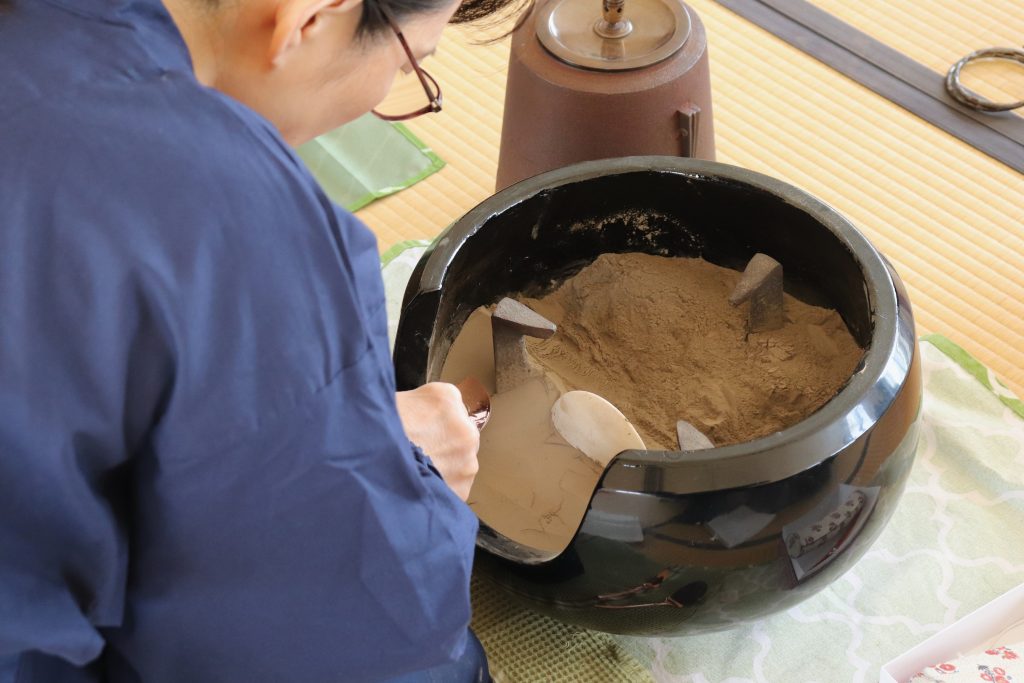 30日に炉風炉入れ替えをした後、5月から10月の風炉の時期は学生が毎日当番制で、授業で使用する風炉の灰形を切ることになります。