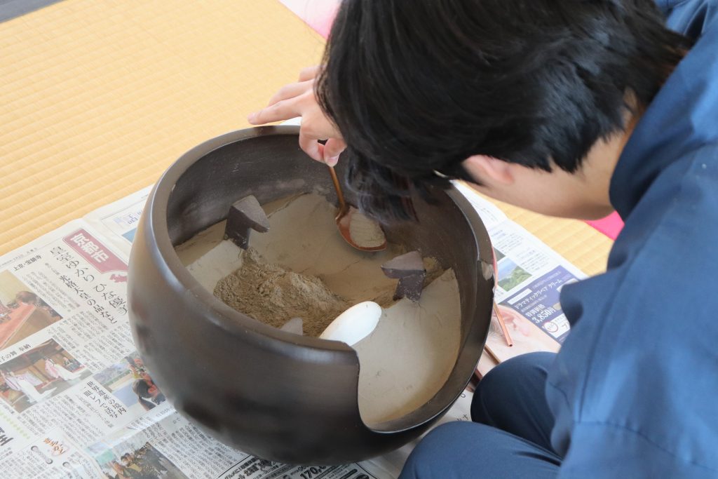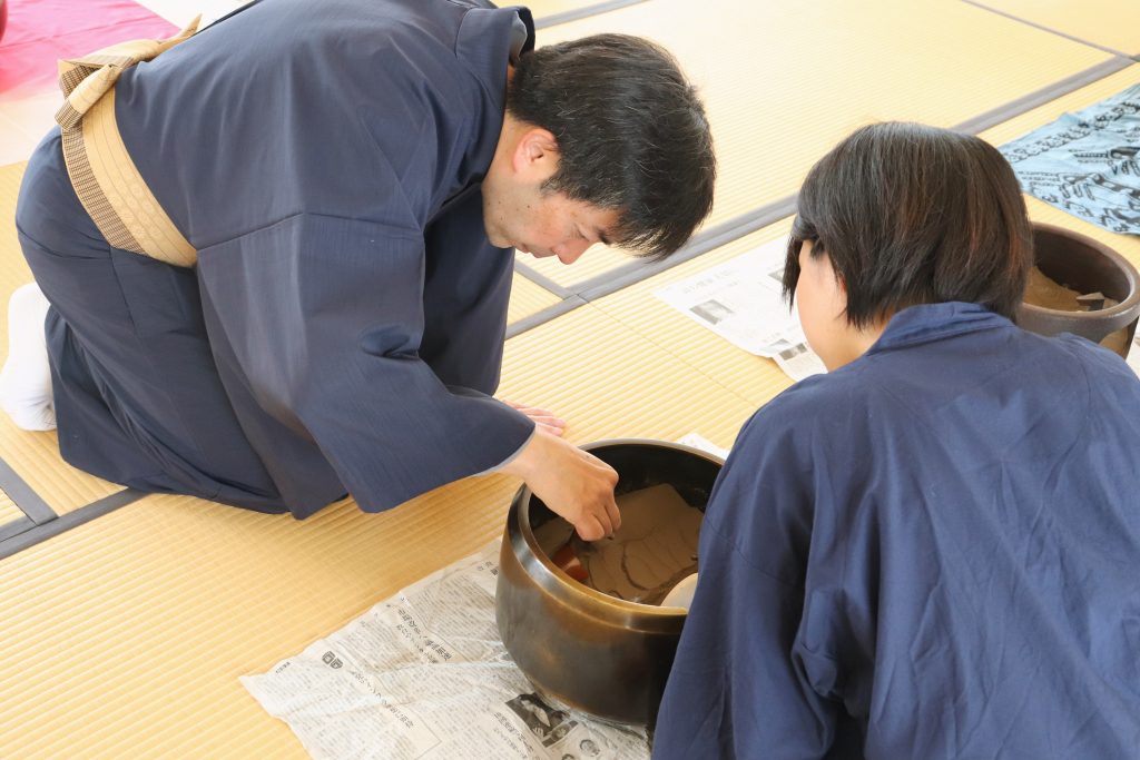 「お点前の経験はあっても、灰は初めて」という学生がほとんどです。今はまだ2時間近くかかる灰形作りも、練習を重ねていずれ30分ほどで完成させられるようになることが目標となりました。